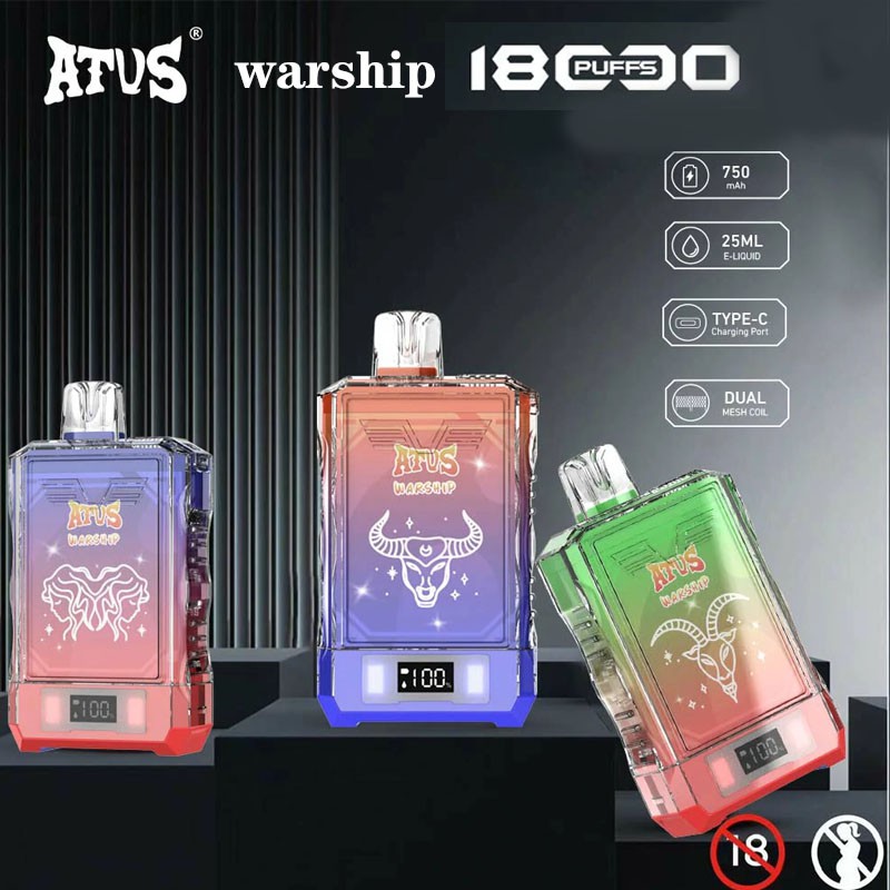 The ATVS Warship 18000 is also designed for convenience, featuring a rechargeable 750mAh battery that supports vaping while charging. In just one hour, the device can be fully charged, making it ideal for users who are always on the go and need a reliable vaping companion.